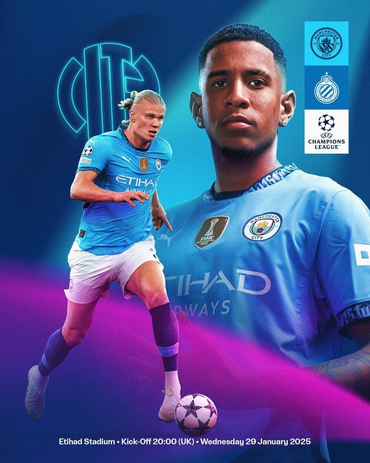 1月29日訊 曼城官方發(fā)布了海報預(yù)熱球隊(duì)同布魯日的歐冠比賽,哈蘭德、薩維尼奧出鏡。