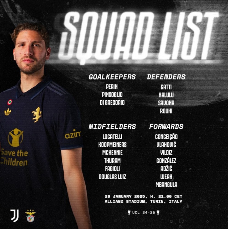 1月29日訊 北京時間1月30日凌晨4:00,歐冠聯(lián)賽階段第8輪,尤文圖斯將坐鎮(zhèn)主場迎戰(zhàn)本菲卡。賽前,尤文官方公布了本場比賽球隊的大名單,弗拉霍維奇領(lǐng)銜鋒線,小孔塞桑&伊爾迪茲在列,后衛(wèi)線僅4人。