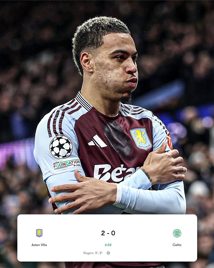 1月30日訊 在本輪歐冠維拉對陣凱爾特人的比賽中,維拉隊員羅杰斯在開場第3分鐘、第5分鐘連入兩球。