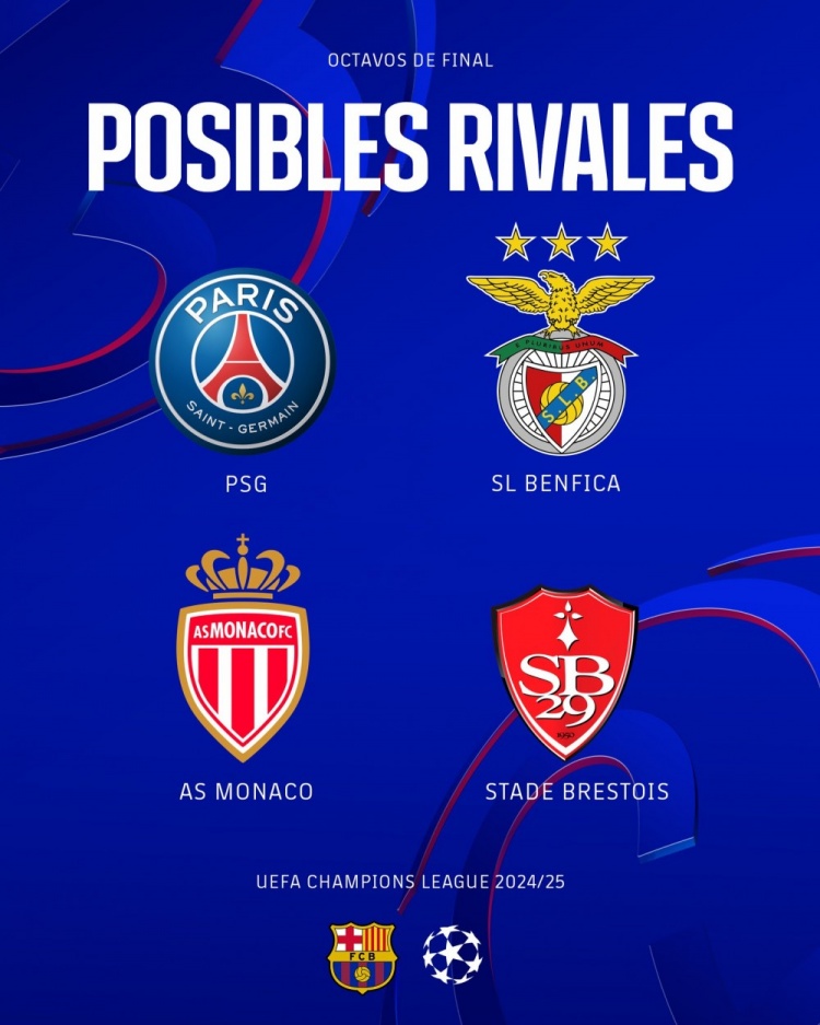 發(fā)布時間:2025年01月30日 09:50點擊:欄目:足球新聞 1月30日訊 歐冠第8輪比賽,巴薩主場2-2戰(zhàn)平亞特蘭大,戰(zhàn)績6勝1平1負積19分,排名積分榜第二位直接晉級16強。巴薩官方社媒曬出了1/8決賽的潛在對手,分別是巴黎、本菲卡、摩納哥、布雷斯特。巴薩社媒配文:“我們的16強戰(zhàn)對手將是這4支球隊之一?!?/p> 除特別注明外,本站所有內(nèi)容均為九球直播整理排版,轉(zhuǎn)載請注明出處:巴薩社媒列1/8決賽潛在對手:巴黎、本菲卡、摩納哥、布雷斯特 本文標(biāo)簽: 足球 歐冠 西甲 巴塞羅那