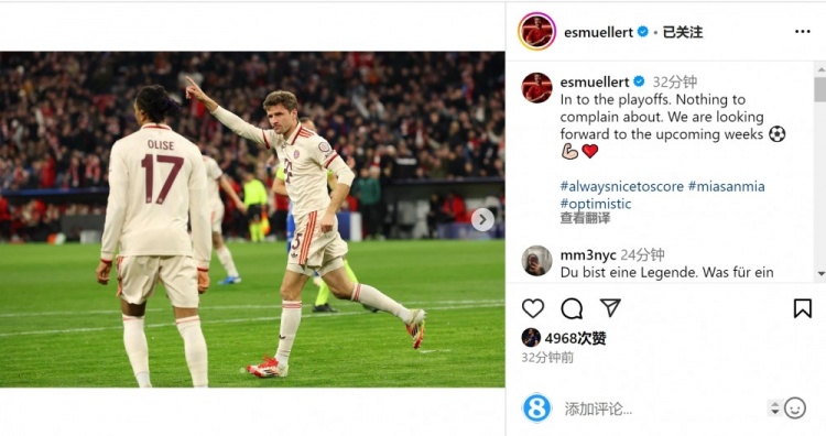 發(fā)布時間:2025年01月30日 10:50點擊:欄目:足球新聞 1月30日訊 歐冠第8輪比賽,穆勒破門,拜仁主場3-1擊敗布拉迪斯拉發(fā),排名積分榜第12位,將參加附加賽。穆勒在社交媒體上曬出比賽照片,配文:“進入附加賽,沒有什么好抱怨的。我們期待接下來幾周的比賽?!?/p> 除特別注明外,本站所有內容均為九球直播整理排版,轉載請注明出處:將踢附加賽?穆勒社媒:沒什么好抱怨的,期待未來幾周的比賽 本文標簽: 足球 德甲 拜仁慕尼黑 歐冠 穆勒