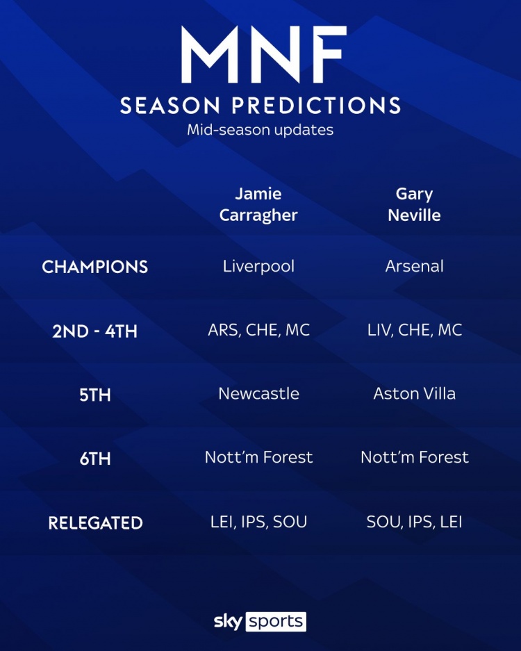 12月31日訊 卡拉格、內(nèi)維爾對本賽季的英超大結(jié)局進行了預(yù)測,卡拉格預(yù)測利物浦奪冠,內(nèi)維爾預(yù)測阿森納問鼎。
