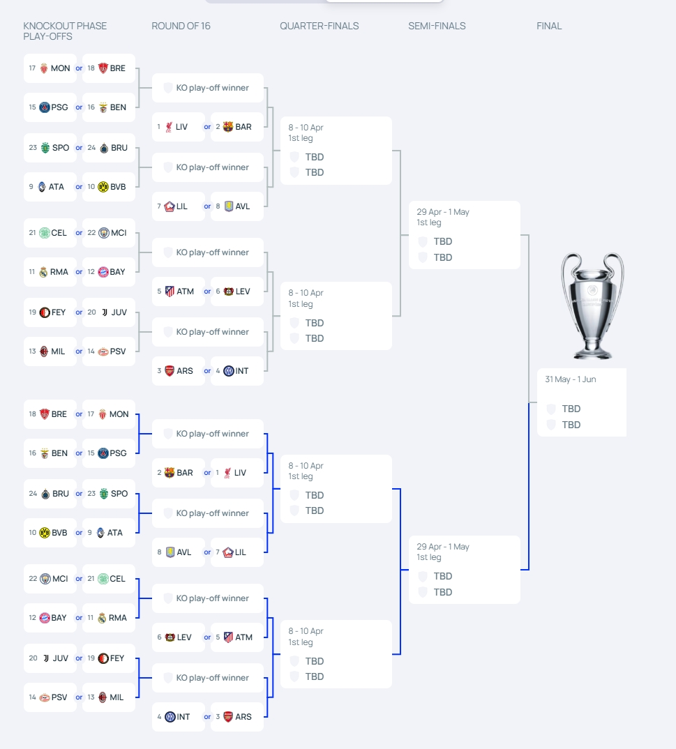 第三,也就此鑄就了頂級(jí)的“死亡之組”的可能。接下來晉級(jí)淘汰賽的附加賽雖然有16個(gè)隊(duì)伍參加,不過其只有四個(gè)“小組”,包括了摩納哥/布雷斯特VS巴黎/本菲卡,葡萄牙體育/布魯日VS亞特蘭大/多特,凱爾特人/曼城VS皇馬/拜仁,費(fèi)耶諾德/尤文VSAC米蘭/埃因霍溫。對(duì)比之下的確是夠殘酷!如果抽出了曼城VS皇馬(拜仁),尤文VS米蘭的對(duì)組情況,就是提前上演賽事決戰(zhàn)了。