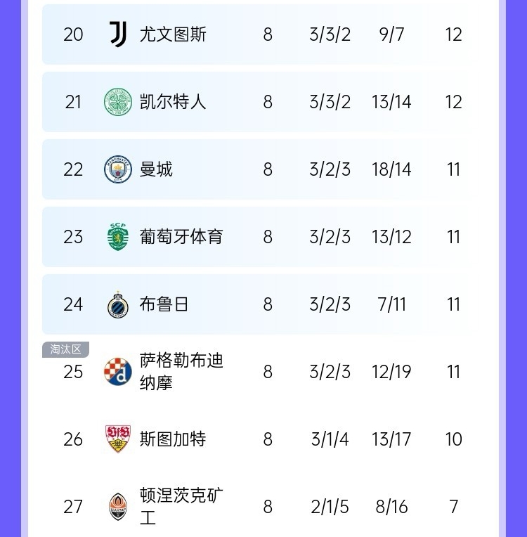 01月30日訊 歐冠聯(lián)賽階段全部結(jié)束,位于淘汰區(qū)首位的薩格勒布迪納摩因?yàn)閮魟偾蛄觿荼惶蕴?/p>