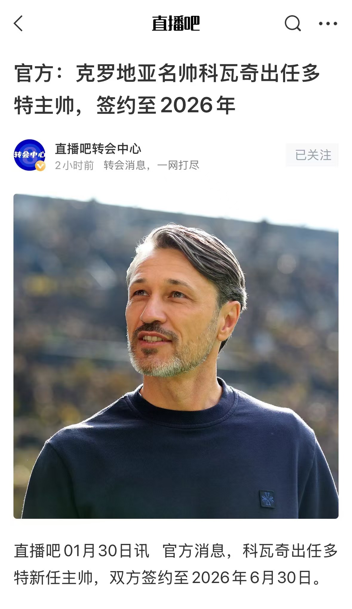 發(fā)布時間:2025年01月30日 18:50點擊:欄目:足球新聞 除特別注明外,本站所有內(nèi)容均為九球直播整理排版,轉(zhuǎn)載請注明出處:滕帥何時再就業(yè)?多特官宣新帥科瓦奇,滕哈赫下課已過三個月 本文標簽: 足球 英超 曼聯(lián) 德甲 多特蒙德