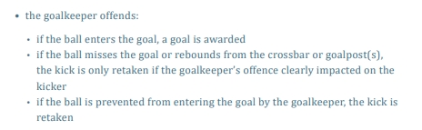 ? 如果球未進(jìn)球門,而是從橫梁或門柱反彈,只有當(dāng)守門員的犯規(guī)明顯影響到踢球者時(shí)才可以重踢