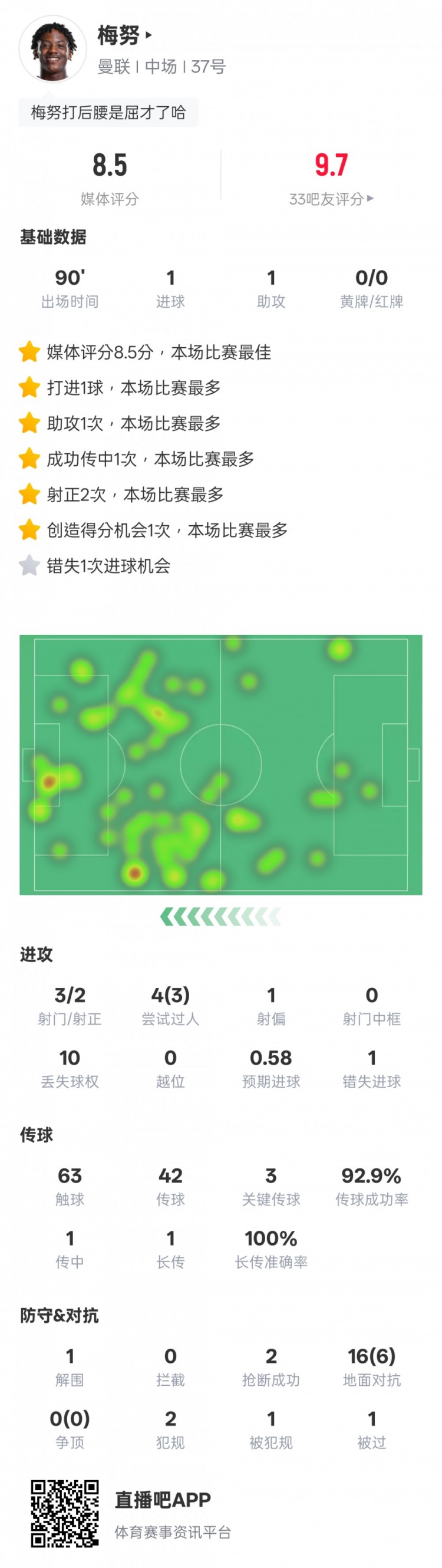 除特別注明外,本站所有內(nèi)容均為九球直播整理排版,轉(zhuǎn)載請(qǐng)注明出處:梅努本場(chǎng)數(shù)據(jù):傳射建功+3關(guān)鍵傳球3過(guò)人成功,評(píng)分8.5全場(chǎng)最高