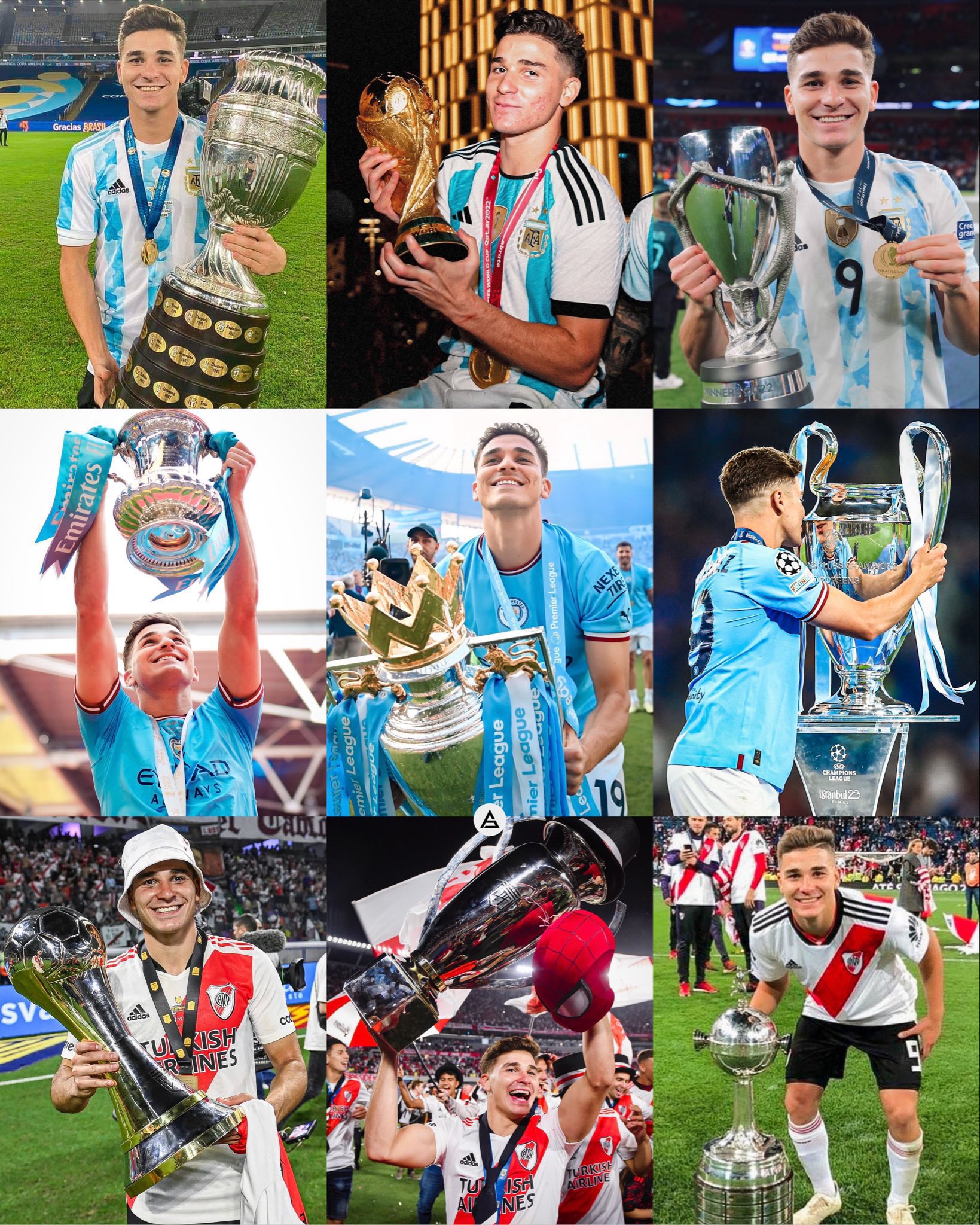 1個世界杯、2個美洲杯、1個歐美杯、1個歐冠、2個英超、1個世俱杯、1個歐超杯、1個足總杯、1個社區(qū)盾、1個南美解放者杯、1個阿根廷杯、1個阿根廷聯(lián)賽冠軍、1個阿根廷超級杯、1個南美優(yōu)勝者杯