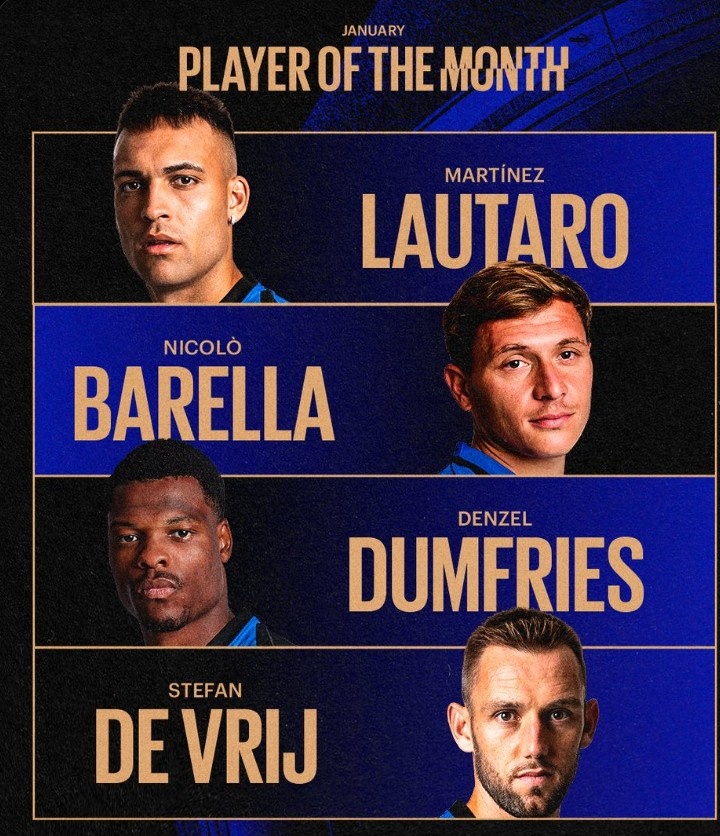 1月31日訊 國(guó)米官方公布了1月份隊(duì)內(nèi)最佳球員候選名單,具體情況如下: