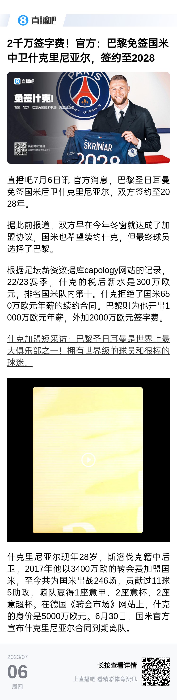 2022/23賽季,國米與當(dāng)時(shí)的球隊(duì)隊(duì)長什克一直就續(xù)約問題進(jìn)行拉扯,國米給出的合同是薪水翻番,從稅后年薪300萬歐漲至600萬歐,但最終巴黎為他開出了1000萬歐元年薪,外加2000萬歐元簽字費(fèi)的待遇,什克從“國米隊(duì)長”變成了球迷口中的“巴黎雇傭兵”。