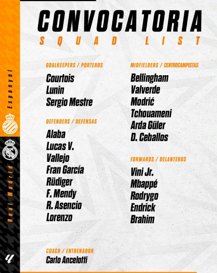除特別注明外,本站所有內(nèi)容均為九球直播整理排版,轉(zhuǎn)載請注明出處:皇馬客戰(zhàn)西班牙人大名單:維尼修斯結(jié)束停賽回歸,姆巴佩領(lǐng)銜鋒線