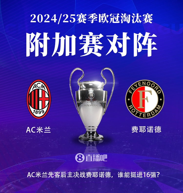 01月31日訊 歐冠淘汰賽附加賽抽簽結(jié)果出爐,AC米蘭抽中費(fèi)耶諾德,將展開先客后主兩回合較量,爭(zhēng)奪一個(gè)歐冠16強(qiáng)名額。