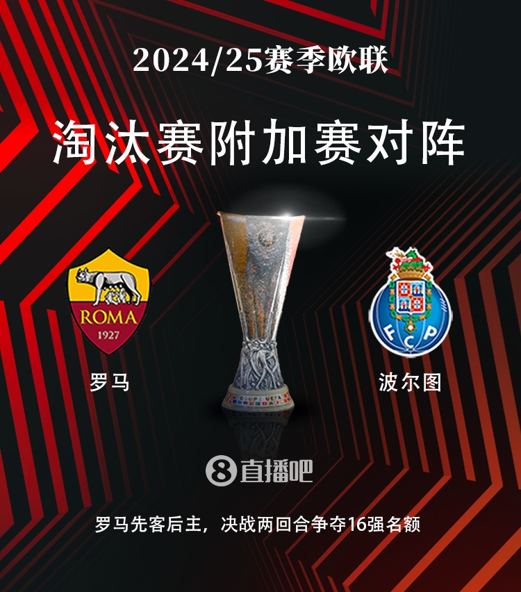 01月31日訊 2024/25賽季歐聯(lián)淘汰賽階段附加賽抽簽結(jié)果今日出爐,羅馬vs波爾圖。