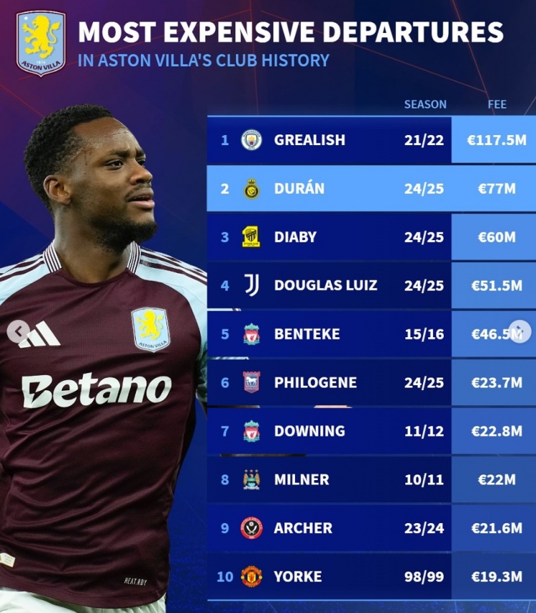 除特別注明外,本站所有內(nèi)容均為九球直播整理排版,轉(zhuǎn)載請注明出處:德轉(zhuǎn)列維拉賣人榜:格拉利什1.175億,杜蘭、道格拉斯-路易斯在列