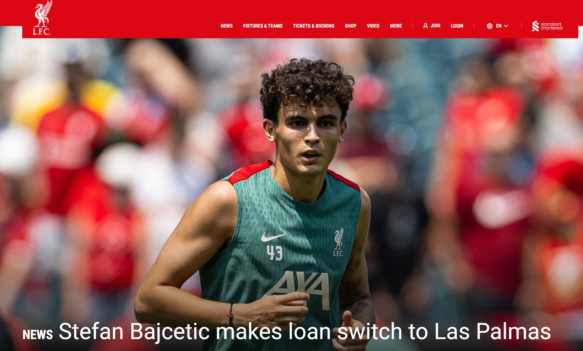 2月1日訊 利物浦俱樂部官方宣布,20歲中場球員巴伊切蒂奇租借加盟拉斯帕爾馬斯,租期至賽季結(jié)束。