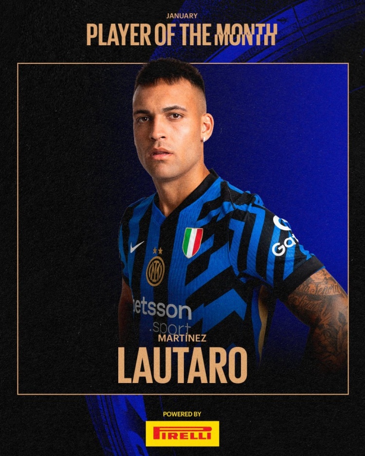 在一月份,勞塔羅代表國米出戰(zhàn)了8場比賽,狂轟8球,還送出2次助攻。最終,他擊敗了巴雷拉、鄧弗里斯和德弗里,當選隊內(nèi)最佳球員。