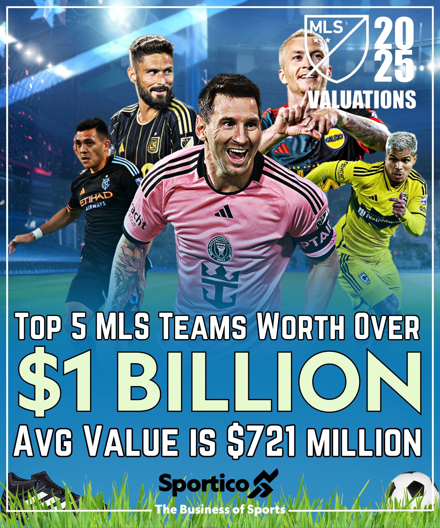 2月1日訊 體育商業(yè)媒體sportico評選出2025年美職聯(lián)球隊商業(yè)價值榜,邁阿密國際位列第二位。