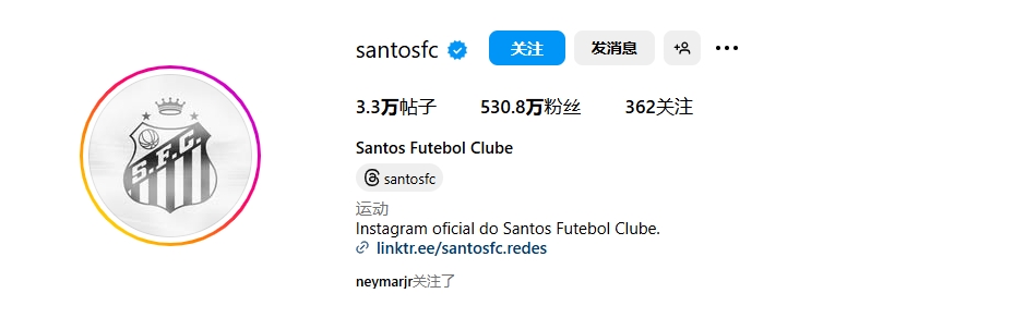 發(fā)布時間:2025年02月01日 17:26點擊:欄目:足球新聞 02月01日訊 巴甲升班馬桑托斯今日宣布,內(nèi)馬爾回歸球隊。6天前桑托斯官方的ins賬號粉絲數(shù)為360萬,目前桑托斯官方ins賬號粉絲數(shù)漲至530萬,6天內(nèi)漲了超過170萬粉絲。 除特別注明外,本站所有內(nèi)容均為九球直播整理排版,轉(zhuǎn)載請注明出處:內(nèi)馬爾效應(yīng)6天內(nèi)桑托斯官方ins賬號漲粉超170萬 本文標簽: 足球 內(nèi)馬爾 五洲 巴甲