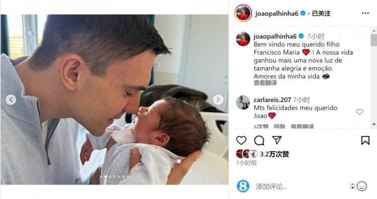 弗朗西斯科是帕利尼亞與帕翠西亞的第二個兒子,根據此前媒體的報道,帕利尼亞因孩子出生缺席了昨天的訓練返回葡萄牙,他與帕翠西亞感情出現(xiàn)危機,已經離婚,目前處于兩地分居的狀態(tài)。