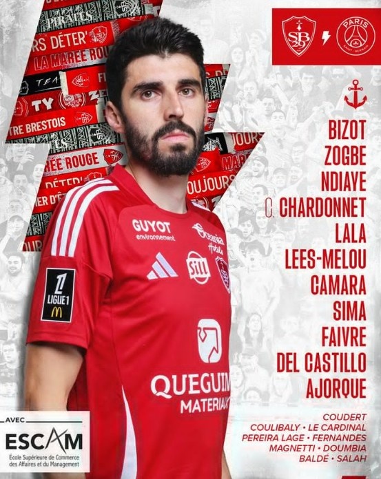 布雷斯特替補(bǔ):44-庫(kù)利巴利、25-勒卡迪納爾、26-馬蒂亞斯-佩雷拉-拉格、6-埃迪米爾森、8-馬格內(nèi)蒂、9-敦比亞、14-巴爾德、34-易卜拉欣-薩拉赫