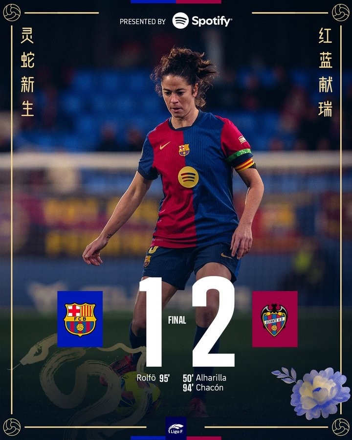 2月2日訊 本輪西甲女足爆出大冷門,巴薩女足坐鎮(zhèn)主場1-2不敵聯(lián)賽倒數(shù)第二萊萬特。