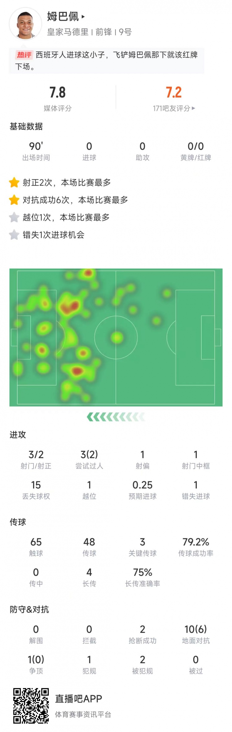 除特別注明外,本站所有內(nèi)容均為九球直播整理排版,轉(zhuǎn)載請注明出處:姆巴佩本場數(shù)據(jù):3次射門2次射正,送出3記關(guān)鍵傳球&獲評7.8分