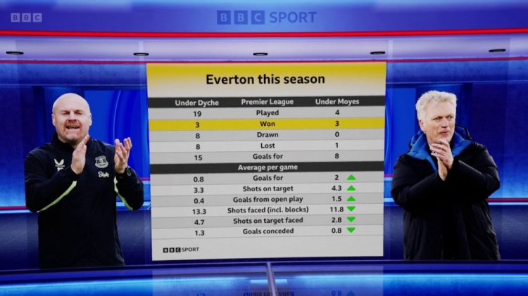本賽季戴奇、莫耶斯執(zhí)教埃弗頓數(shù)據(jù):