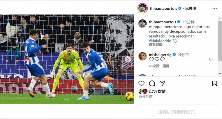 庫(kù)爾圖瓦在社交媒體上曬出比賽照片,并寫(xiě)道:“盡管我們的表現(xiàn)配得上更好的結(jié)果,但我們?nèi)匀粚?duì)失利感到非常失望,是時(shí)候做出反應(yīng)了?!?/p>