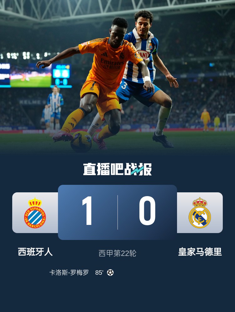羅梅羅第85分鐘絕殺,皇馬0-1西班牙人,只有1分領(lǐng)跑積分榜。