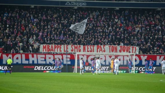 01月04日訊 今天凌晨法乙第17輪,卡昂主場0-1負(fù)于克萊蒙,卡昂球迷在比賽中打出橫幅,向球隊大股東姆巴佩表達(dá)抗議:“姆巴佩,卡昂不是你的玩具!”