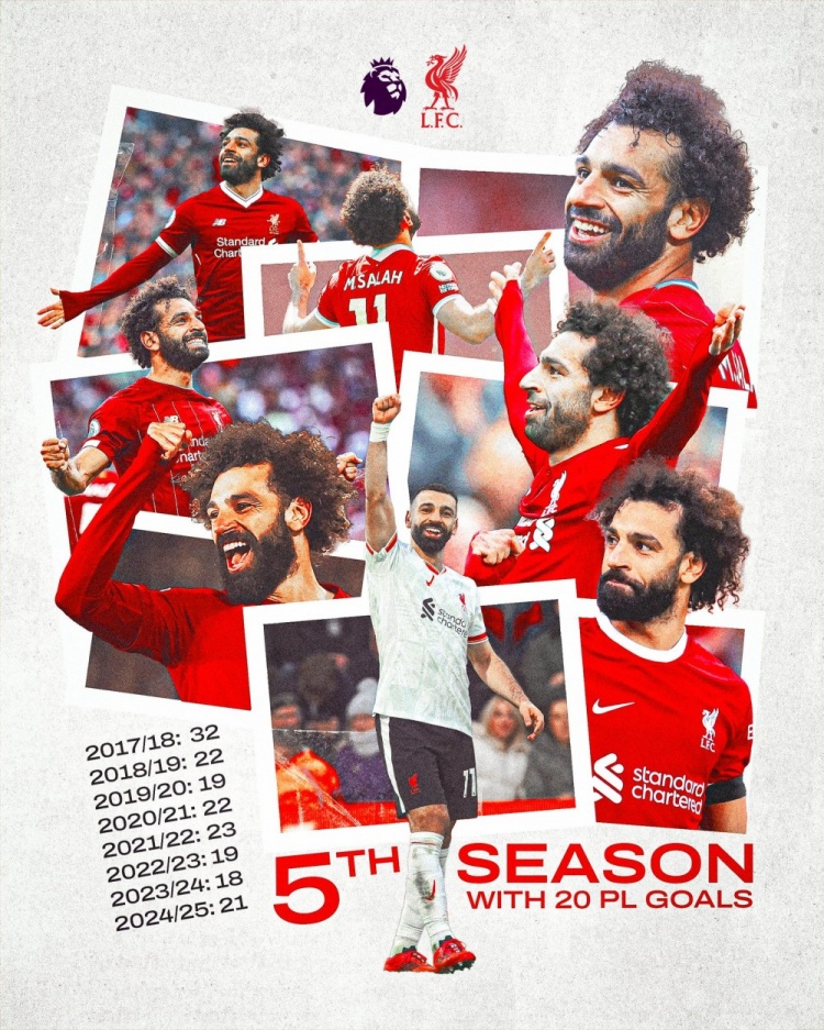除特別注明外,本站所有內(nèi)容均為九球直播整理排版,轉(zhuǎn)載請(qǐng)注明出處:利物浦曬薩拉赫數(shù)據(jù)海報(bào):5個(gè)賽季英超進(jìn)球20+,歷史第5人