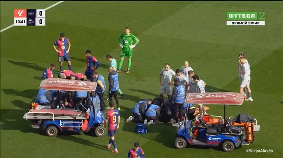最后加維無大礙但被費爾明換下,馬丁被擔架運送離場。