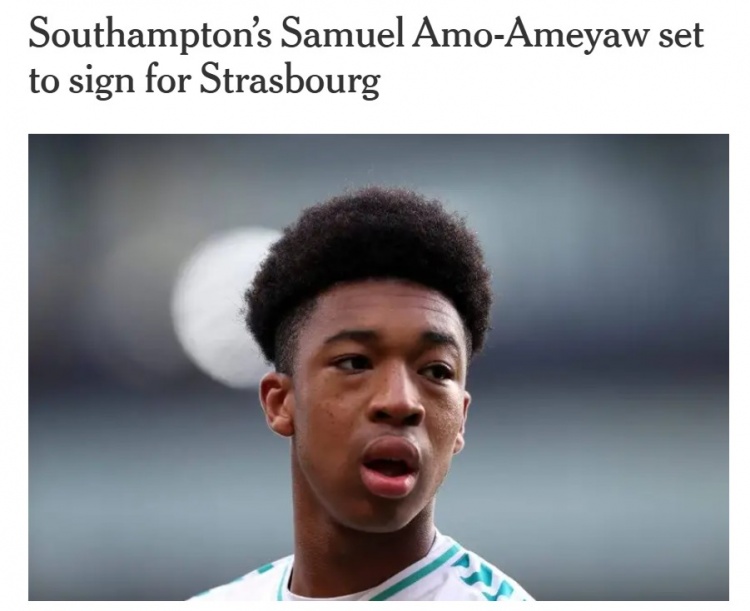 2月2日訊 根據(jù)The Athletic報道,南安普頓18歲右邊鋒阿米亞耶將租借加盟法甲斯特拉斯堡。
