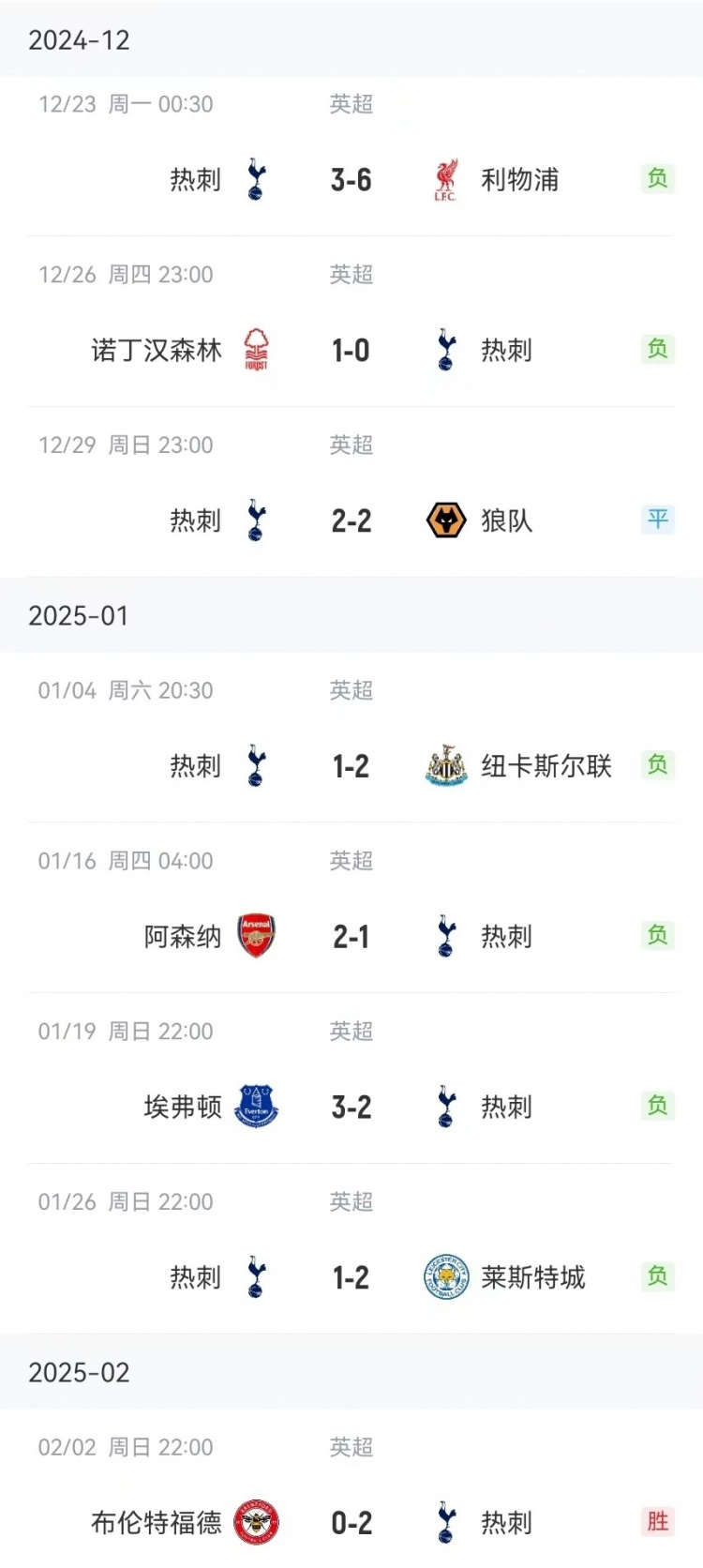 發(fā)布時間:2025年02月03日 00:50點擊:欄目:足球新聞 2月3日訊 熱刺在本輪英超2-0布倫特福德,結(jié)束了一波7輪不勝。數(shù)據(jù)統(tǒng)計顯示,熱刺上次在英超贏球還是12月中旬5-0副班長南安普頓,自那之后他們遭遇1平6負(fù)。 除特別注明外,本站所有內(nèi)容均為九球直播整理排版,轉(zhuǎn)載請注明出處:結(jié)束7輪不勝,熱刺上次在英超贏球還是12月中旬5-0南安普頓 本文標(biāo)簽: 足球 英超 熱刺 布倫特福德