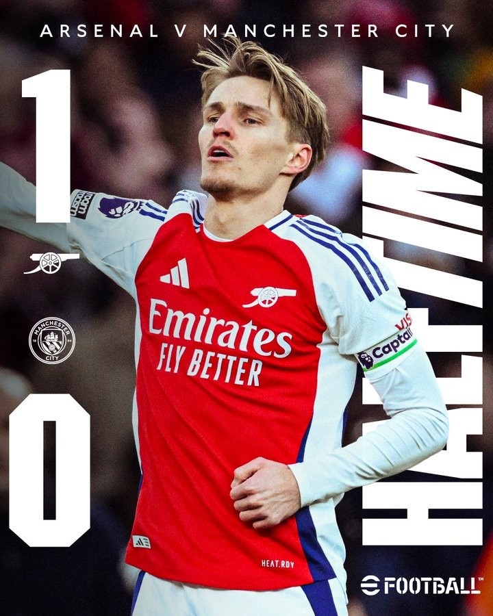 2月3日訊 阿森納在本輪英超半場(chǎng)1-0領(lǐng)先曼城,厄德高為主隊(duì)閃擊建功。