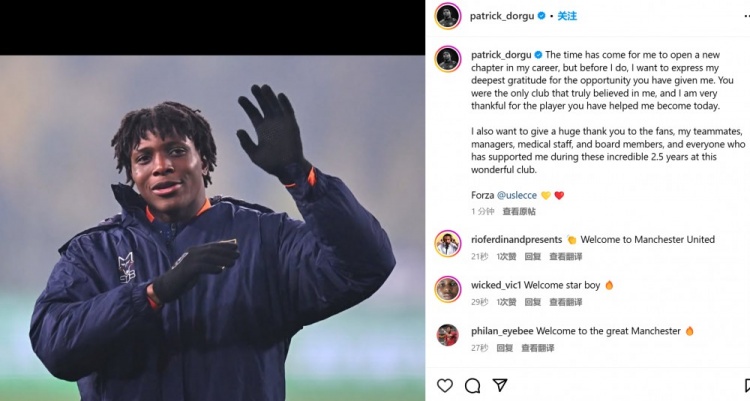 “我還要向球迷、隊(duì)友、教練、醫(yī)療組、董事會(huì)以及在這2年半時(shí)間內(nèi)支持過(guò)我的所有人,表達(dá)衷心的感謝。@萊切俱樂(lè)部,加油!”