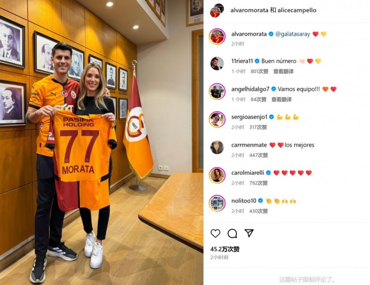 發(fā)布時間:2025年02月03日 06:50點擊:欄目:足球新聞 2月3日訊 米蘭前鋒莫拉塔已經(jīng)官宣租借加盟土超豪門加拉塔薩雷,他也通過社媒曬出加盟照。值得一提的是,他還曬出了自己和妻子一起手持77號球衣的照片,這也證實了此前兩人已經(jīng)復(fù)合的傳聞。據(jù)悉,莫拉塔租期至2026年1月,加拉塔薩雷支付600萬歐租借費,并有800萬歐的可選擇買斷條款。 除特別注明外,本站所有內(nèi)容均為九球直播整理排版,轉(zhuǎn)載請注明出處:離開米蘭就復(fù)合莫拉塔社媒曬和妻子手持加拉塔薩雷77號球衣照 本文標簽: 足球 意甲 AC米蘭 轉(zhuǎn)會