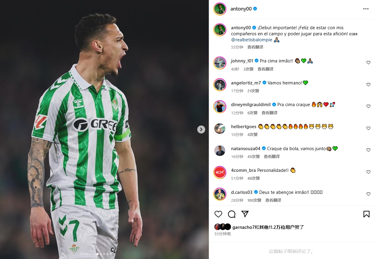 發(fā)布時間:2025年02月03日 08:50點擊:欄目:足球新聞 2月3日訊 西甲第22輪比賽,安東尼首發(fā)出戰(zhàn)上演貝蒂斯首秀,幫助貝蒂斯主場2-2戰(zhàn)平畢爾巴鄂,他也當選此役全場最佳球員。安東尼賽后在社交媒體上寫道:“重要的首秀!很高興與我的隊友們在場上并肩作戰(zhàn),為貝蒂斯球迷們踢球!”安東尼射門被撲,隊友補射破門 除特別注明外,本站所有內容均為九球直播整理排版,轉載請注明出處:安東尼社媒:重要首秀,很高興與隊友并肩作戰(zhàn)&為貝蒂斯球迷踢球 本文標簽: 足球 西甲 貝蒂斯 英超 曼聯(lián)