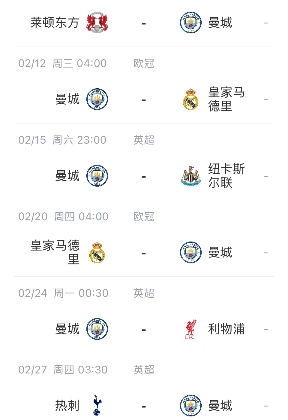 發(fā)布時間:2025年02月03日 08:50點擊:欄目:足球新聞 02月03日訊 英超第24輪,曼城客場1-5慘敗阿森納,本場過后,曼城本月還有多場硬仗要打。下一場客戰(zhàn)萊頓東方之后,曼城需要先主后客對陣皇馬,在英超賽場還需要對陣紐卡、利物浦、熱刺。 除特別注明外,本站所有內(nèi)容均為九球直播整理排版,轉(zhuǎn)載請注明出處:大的在后面?曼城魔鬼賽程才剛開始,后面需2戰(zhàn)皇馬+戰(zhàn)利物浦熱刺 本文標(biāo)簽: 足球 英超 曼城 西甲 皇家馬德里 阿森納 利物浦 熱刺 紐卡斯?fàn)柭?lián)