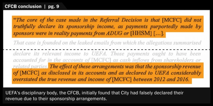 最初,CFCB聽證會發(fā)現(xiàn),曼城違反了其規(guī)定第56條,未能提供所要求的信息,并一度提出球隊所有權(quán)“存在作假”的指控。