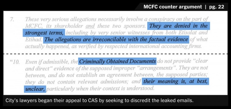 曼城的律師們向CAS提出上訴,他們認為這些郵件被誤讀了。