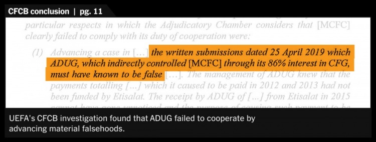 CFCB調(diào)查發(fā)現(xiàn),曼蘇爾通過其在城市集團的股份間接控制了曼城,且未能配合調(diào)查,解釋CFCB所懷疑的“虛假信息”。