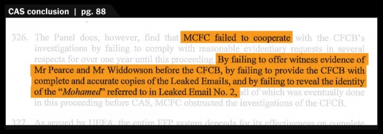 CAS判決中顯示,曼城未能提供相應(yīng)的證據(jù),確實阻礙了CFCB的調(diào)查。