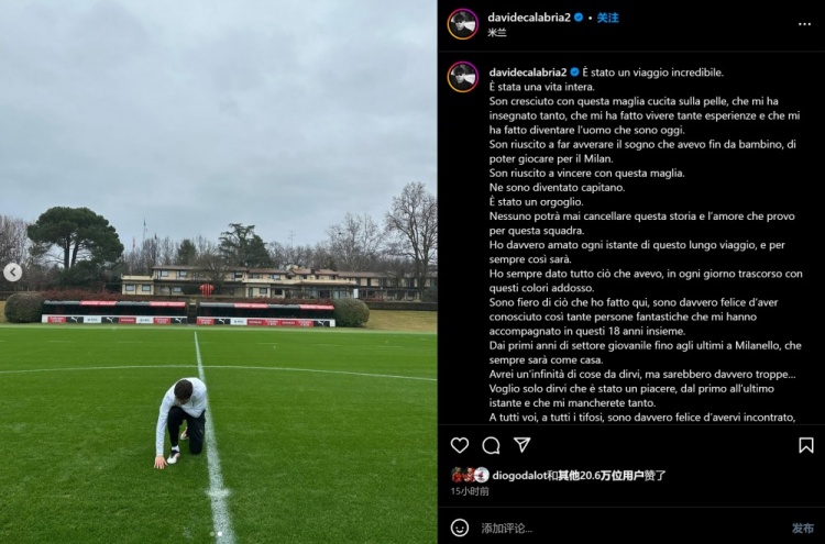 卡拉布里亞寫道:“這是一次令人難以置信的旅程。這也是我一生的故事。我從小就穿著這件球衣,它仿佛被縫在了我的身體上。它教會(huì)了我很多東西,讓我經(jīng)歷了很多,讓我成為了今天的我。”