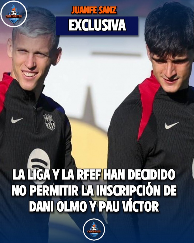 Juanfe Sanz指出,經(jīng)過緊張的會議,西甲和西班牙足協(xié)決定不允許奧爾莫、保-維克托注冊,這一決定將在接下來幾小時內(nèi)正式公布。