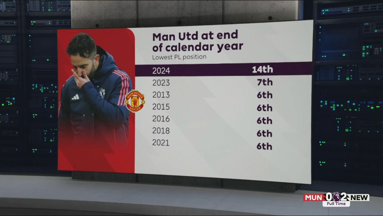 除特別注明外,本站所有內(nèi)容均為九球直播整理排版,轉(zhuǎn)載請(qǐng)注明出處:歷史最差!曼聯(lián)2024年收官僅排英超第14,此前最差也能排第7