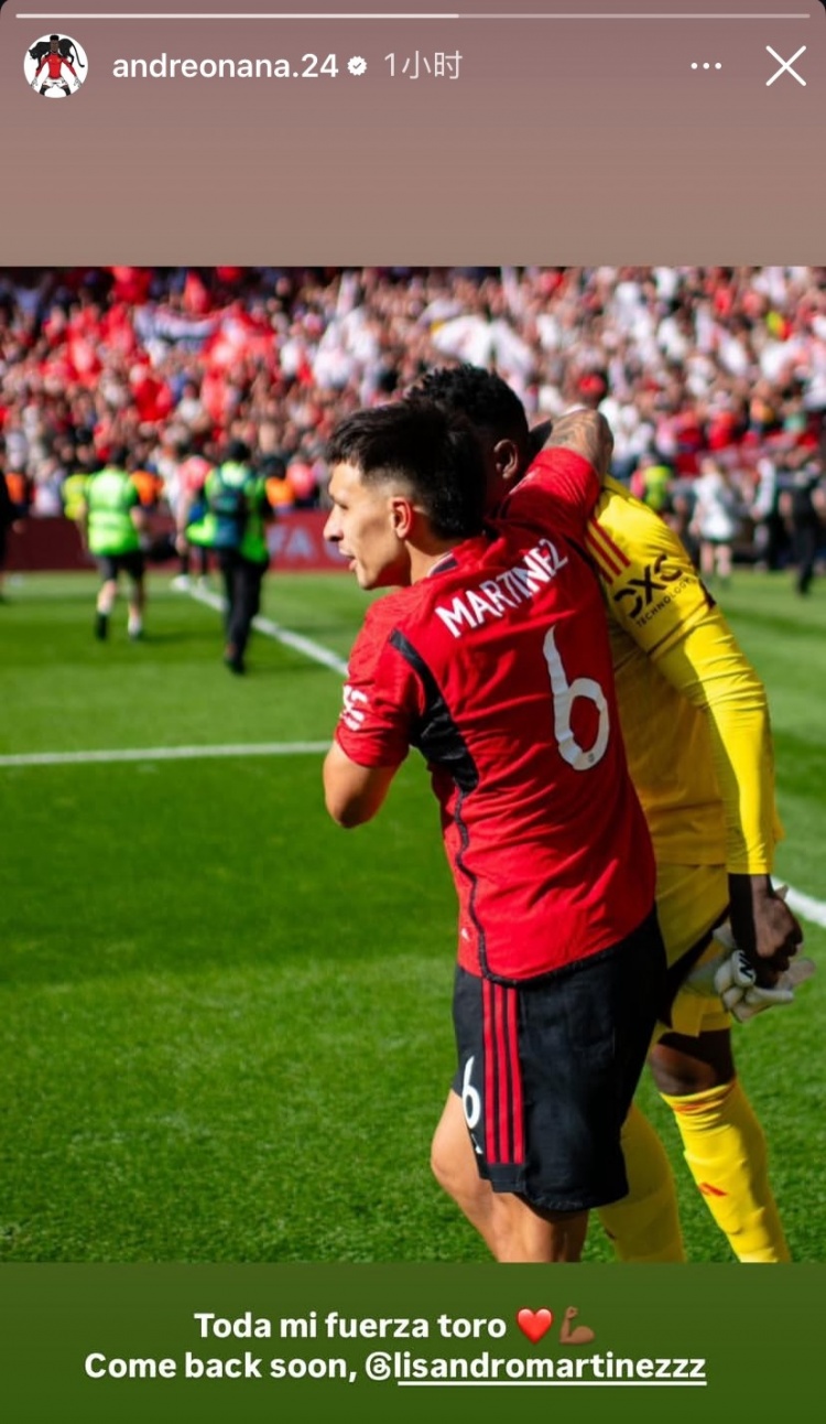 2月4日訊 多家媒體報(bào)道,曼聯(lián)中衛(wèi)利馬遭遇十字韌帶撕裂重傷,預(yù)計(jì)傷缺六個月時間,賽季提前報(bào)銷。奧納納更新了社媒,向自己的后防搭檔送上安慰。