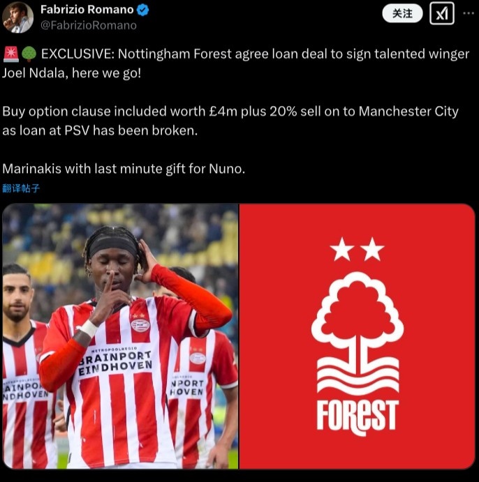 發(fā)布時間:2025年02月04日 06:50點擊:欄目:足球新聞 2月4日訊 據(jù)名記羅馬諾消息,森林接近簽下18歲英格蘭前鋒恩達拉,球員目前被曼城U21租借到埃因霍溫B隊效力。羅馬諾在社媒寫道:“獨家消息:諾丁漢森林同意以租借方式簽下天才邊路球員喬爾-恩達拉,HWG!由于曼城和埃因霍溫就球員租借的相關事項已經(jīng)破裂,諾丁漢森林從中介入,據(jù)悉租借合同中將附帶400萬鎊+20%未來轉會分成的買斷條款。” 除特別注明外,本站所有內容均為九球直播整理排版,轉載請注明出處:羅馬諾:森林將租借恩達拉,附帶400萬歐+20%二轉分成買斷條款 本文標簽: 足球 英超 曼城 諾丁漢森林 轉會 五洲 荷甲