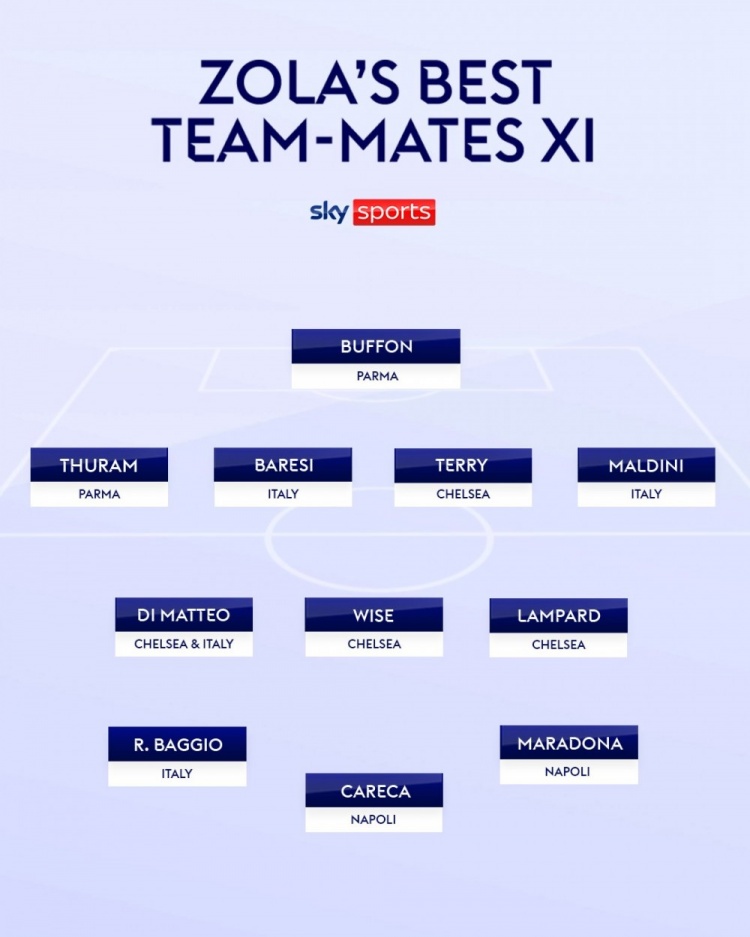佐拉選生涯隊(duì)友最佳陣: