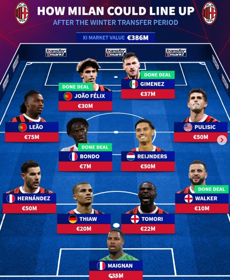 2月4日訊 米蘭在冬窗引進(jìn)了多位球員,《轉(zhuǎn)會(huì)市場(chǎng)》也據(jù)此列出了一套補(bǔ)強(qiáng)后的首發(fā)陣容,四大新援在列。